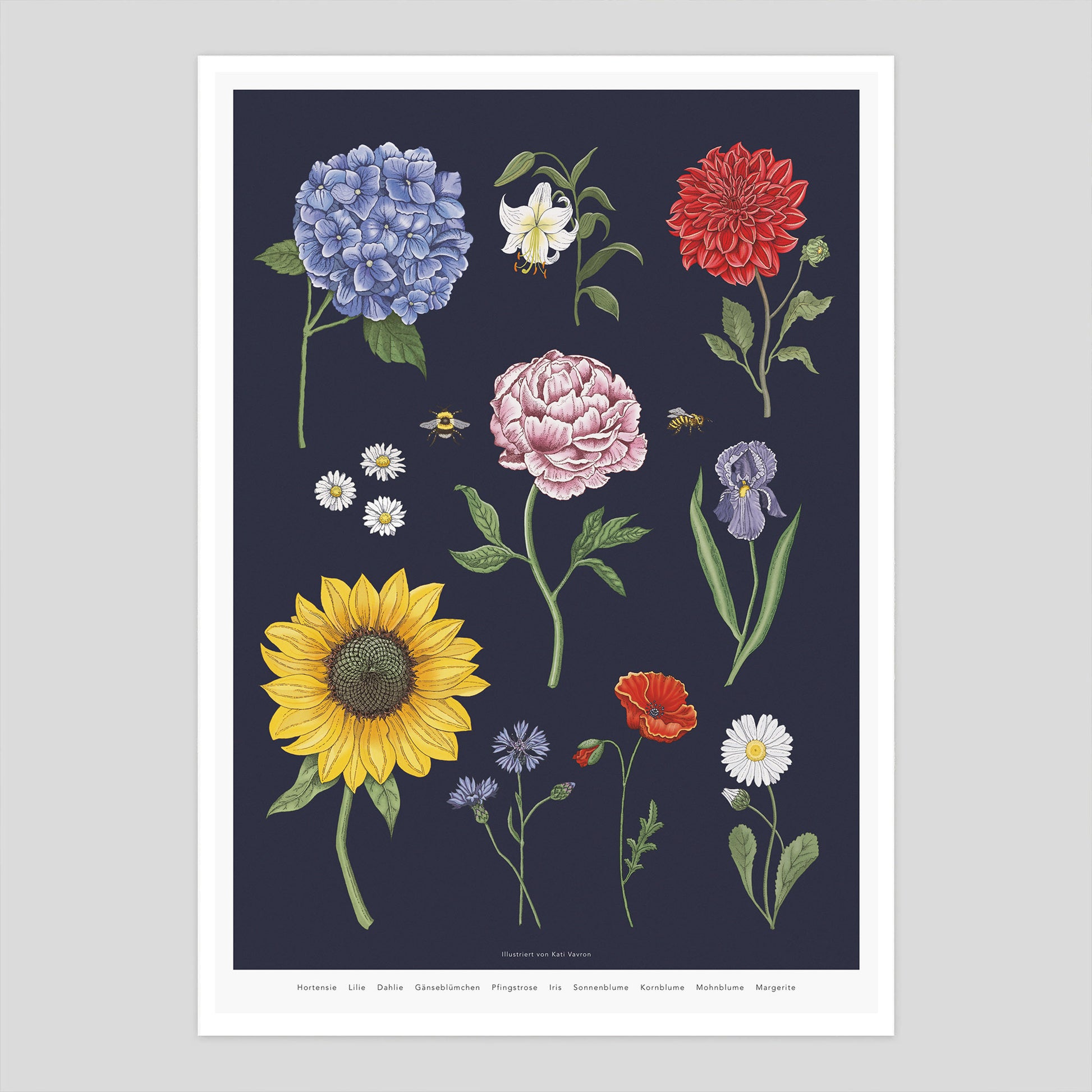„In voller Blüte“ sind 10 beliebte Blumen in edler Farbgebung abgebildet.