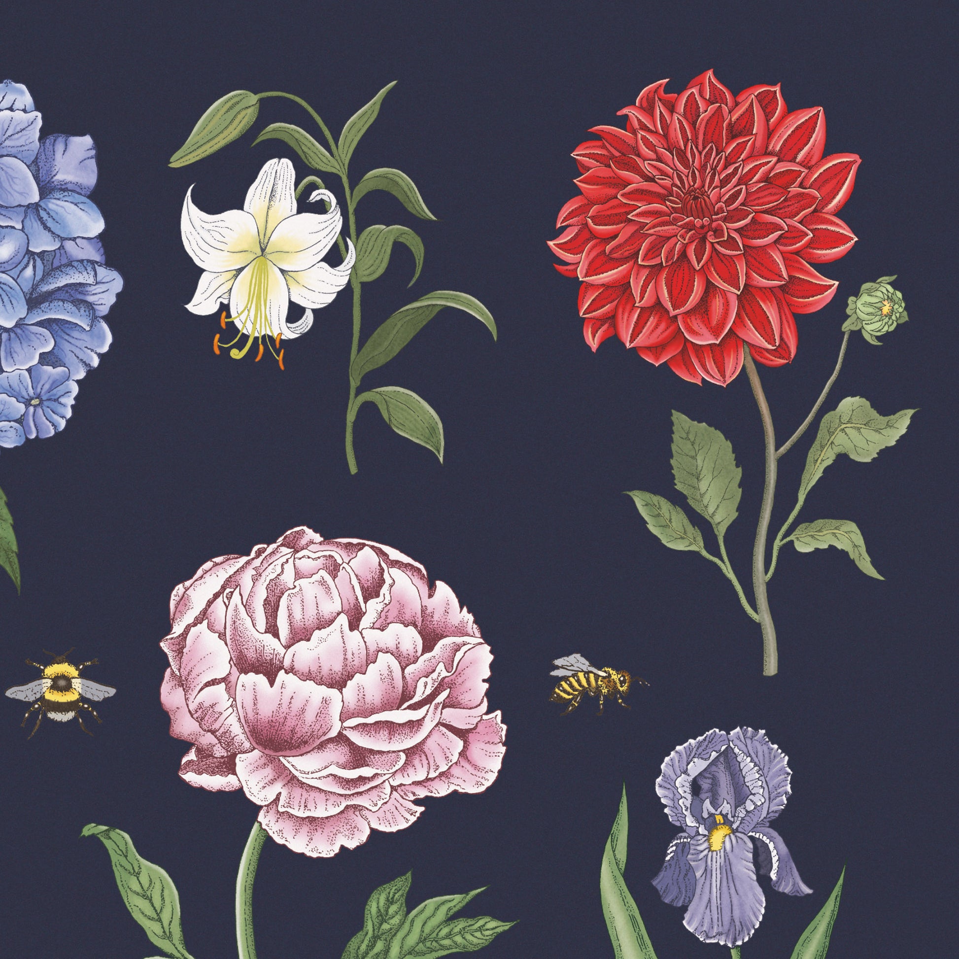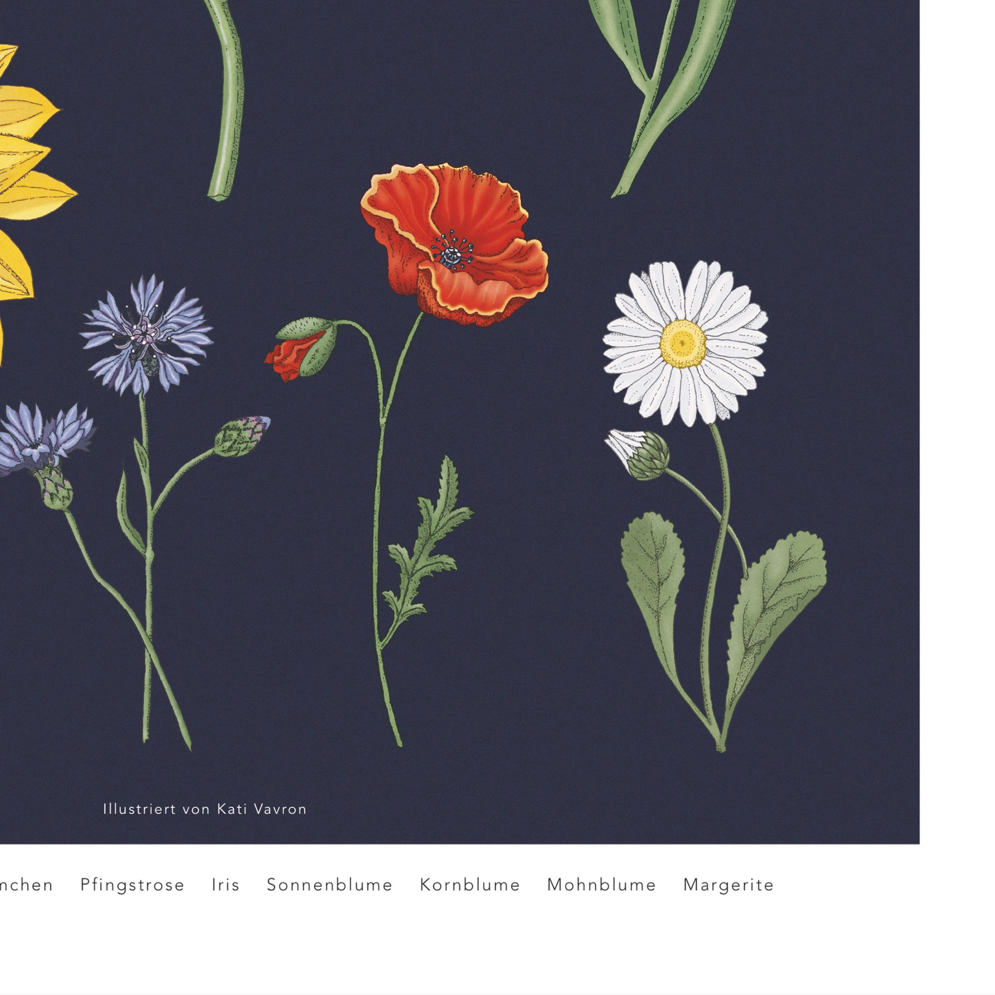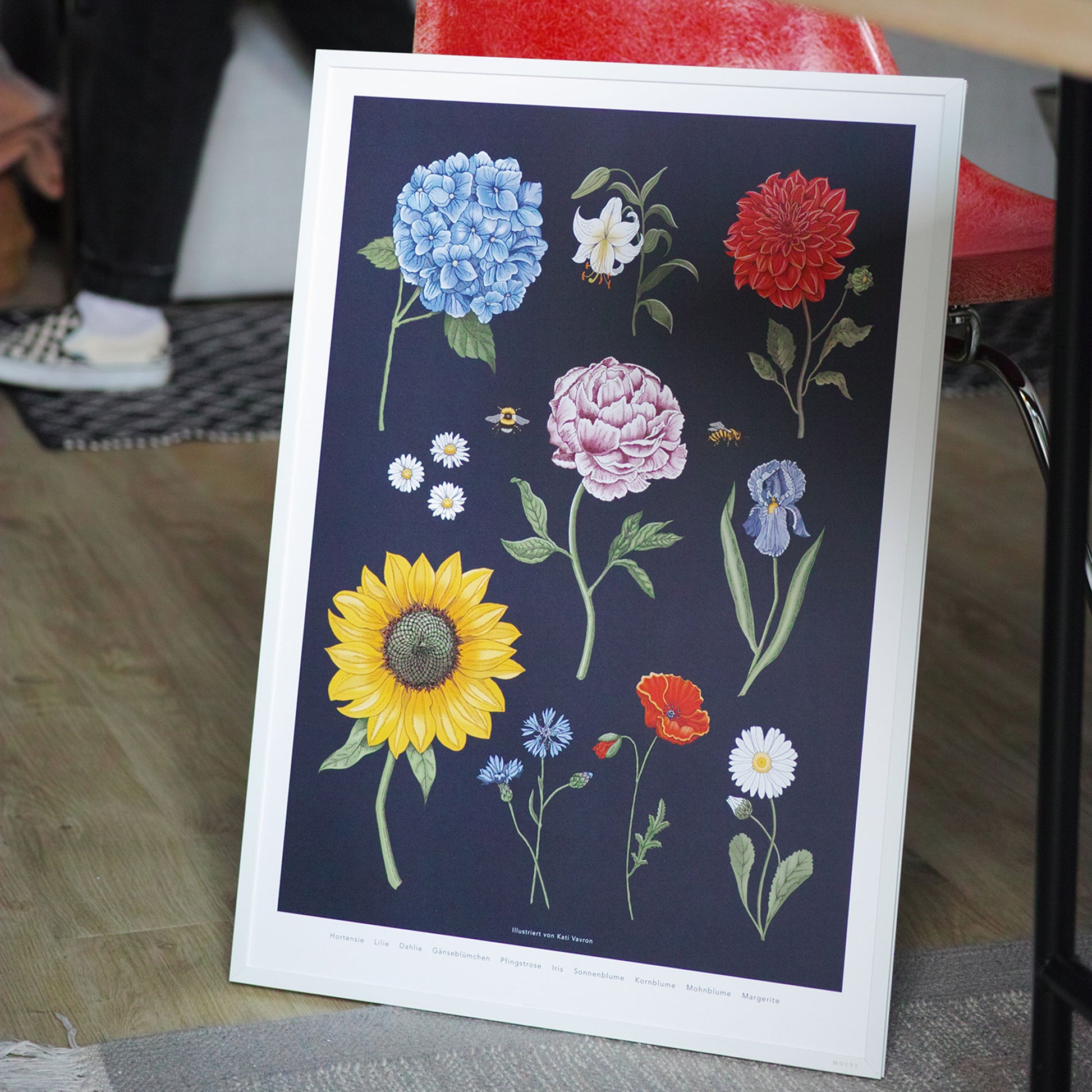 Edler Blüten-Print mit handgezeichneten Illustrationen