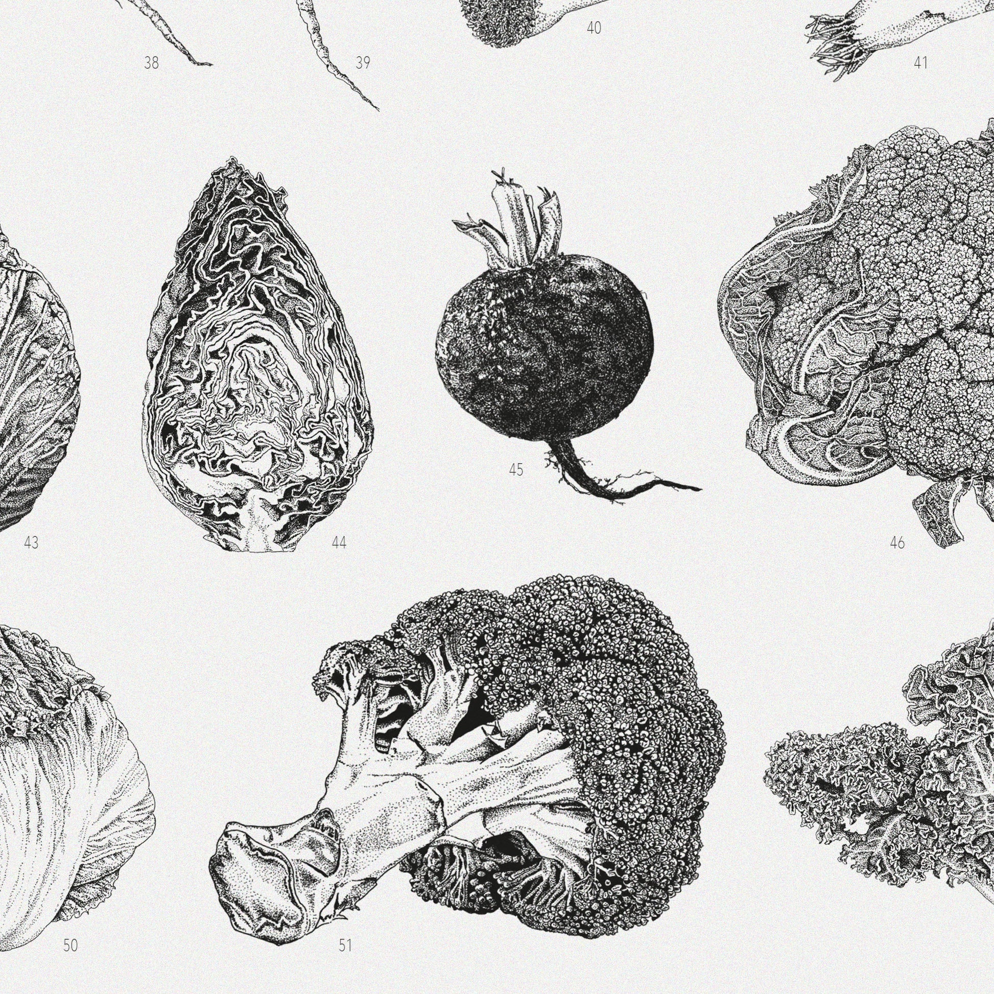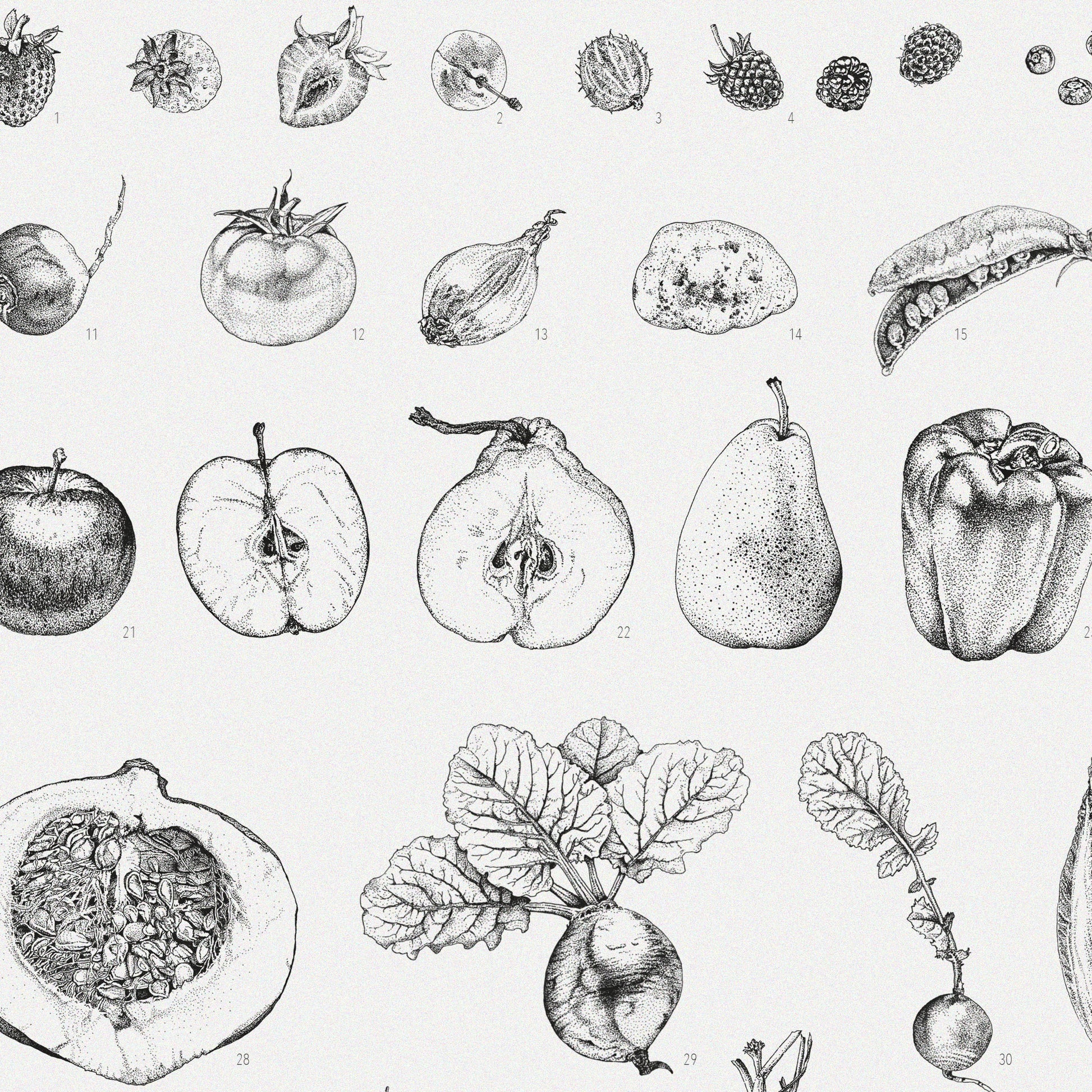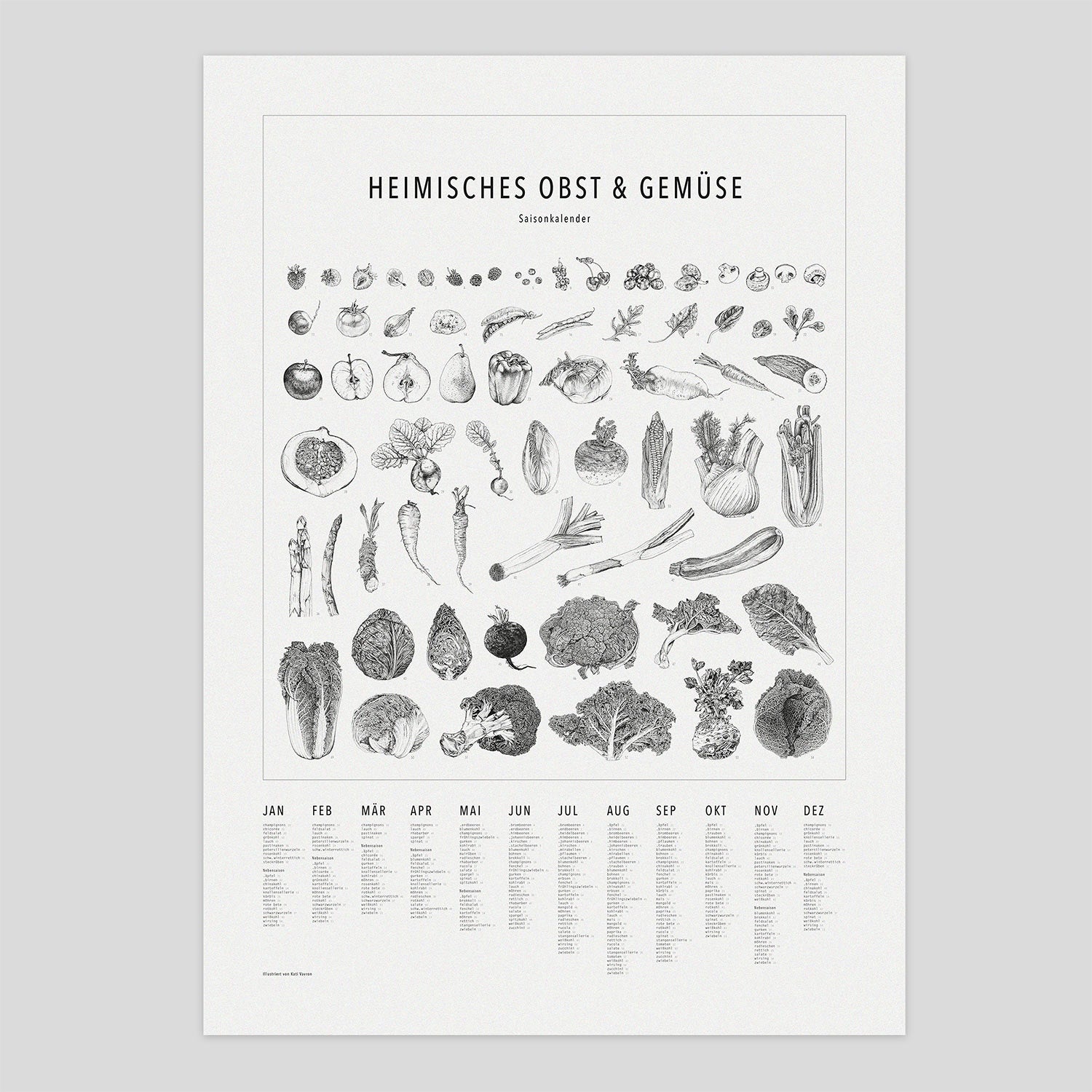 Alle Obst- und Gemüsesorten sind darüber abgebildet und durch Ziffern referenziert. So weißt du z.B. wie Mangold aussieht – ich wusste das davor nicht so genau :-O. Der Stil erinnert an alte Lehrtafeln und passt, wie ich finde, sehr gut in Altbauwohnungen.