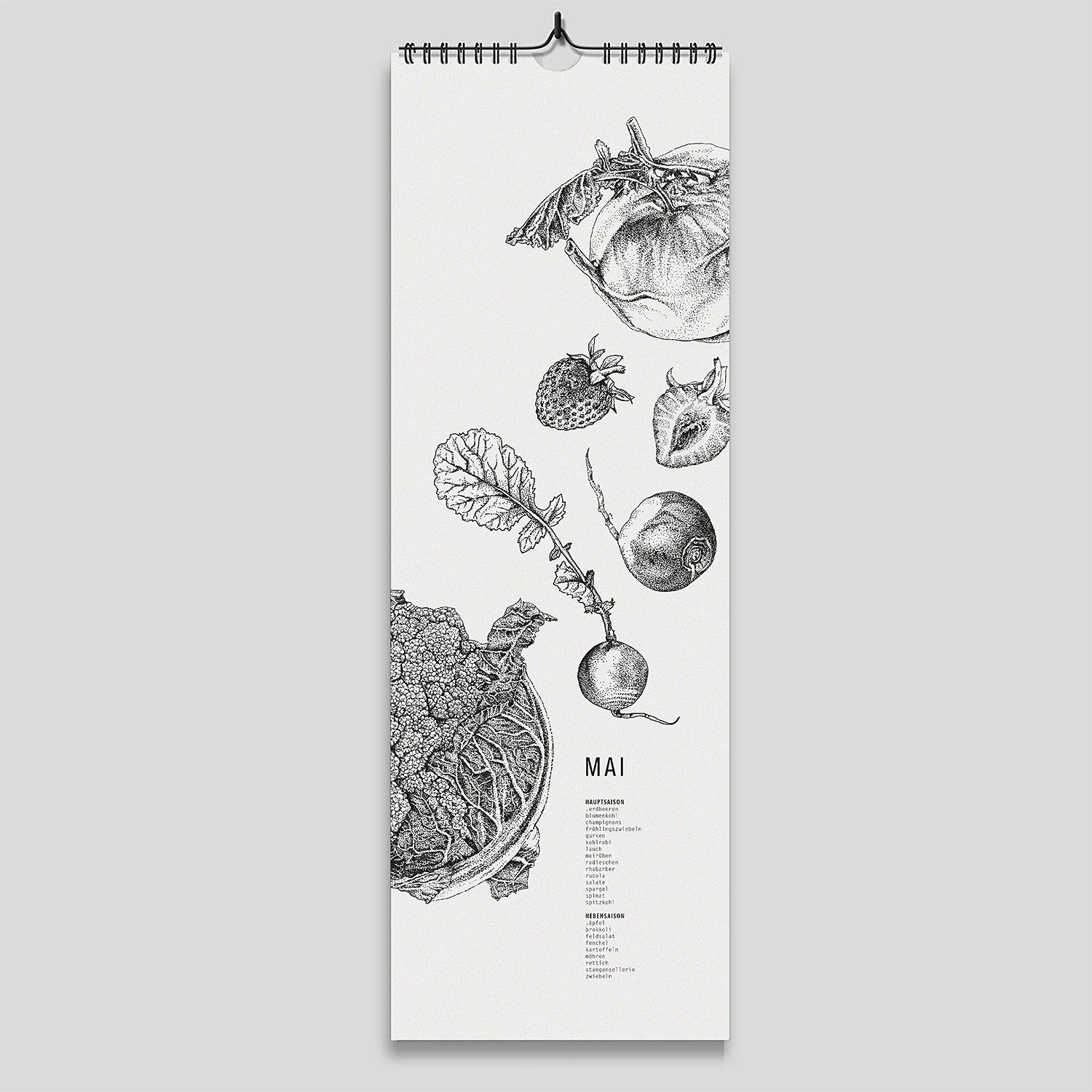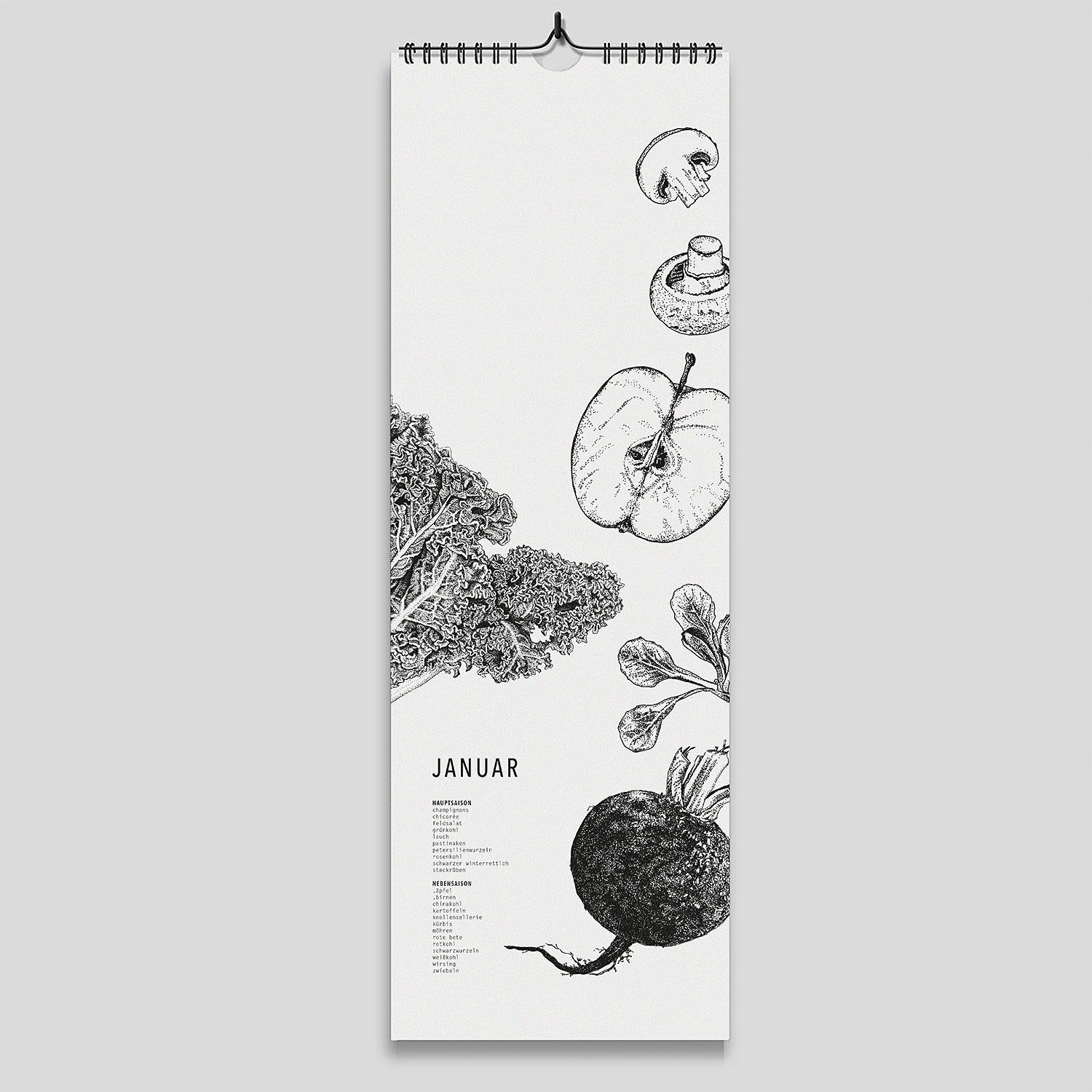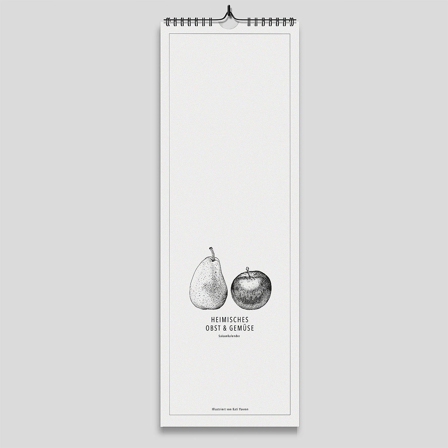 Monat für Monat wird das saisonale Obst und Gemüse Deutschlands angezeigt – aufgeteilt in Haupt- und Nebensaison. Durch das schmale Format und die minimalistische Gestaltung passt der Kalender sehr gut in die Küche. So kannst du dich vor dem Kochen inspirieren lassen und nachhaltig einkaufen.