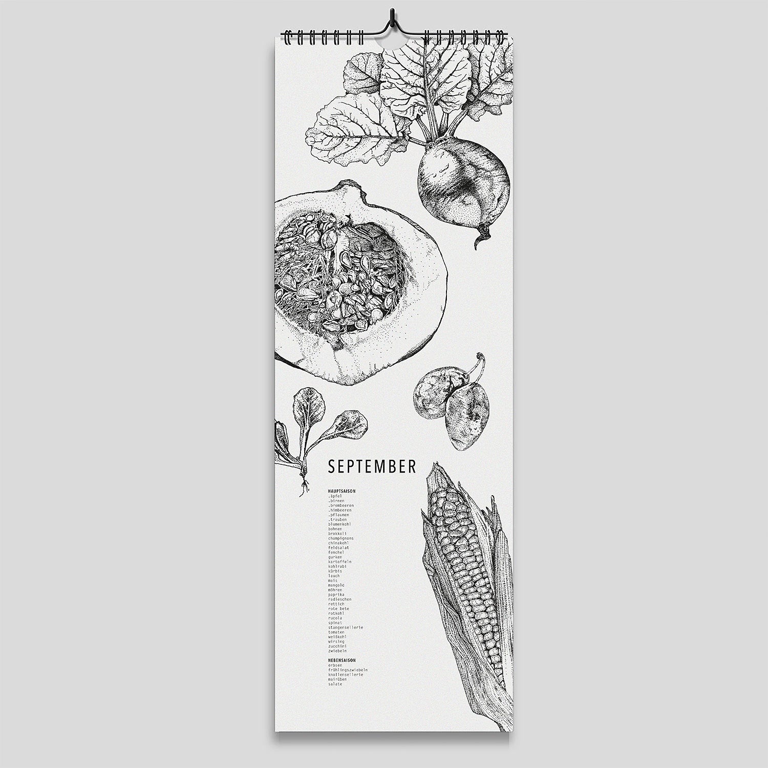 Besonderer Saisonkalender mit liebevoll von Hand gezeichneten Illustrationen