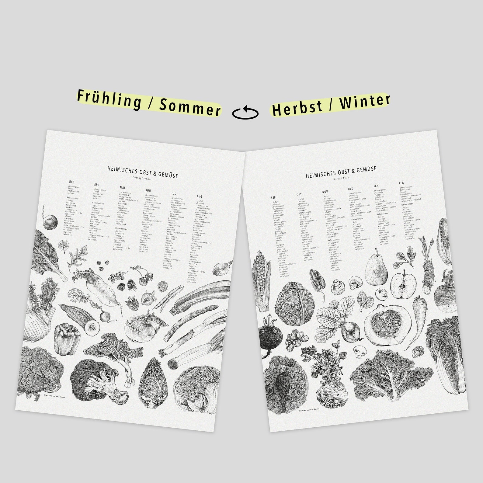 Saisonkalender zum Wenden – Poster (DINA3)